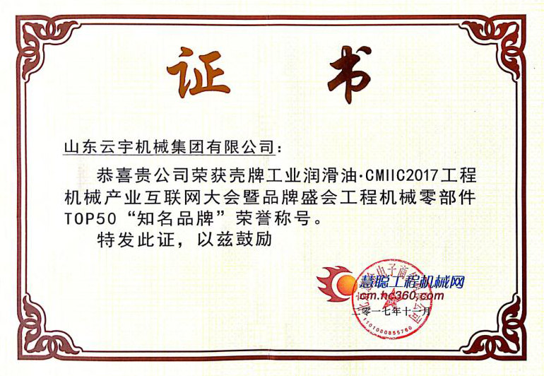 Brand event, construction machinery parts TOP50 "famous brand" certificate