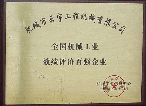 Top 100 enterprises in China's machinery industry performance evaluation
