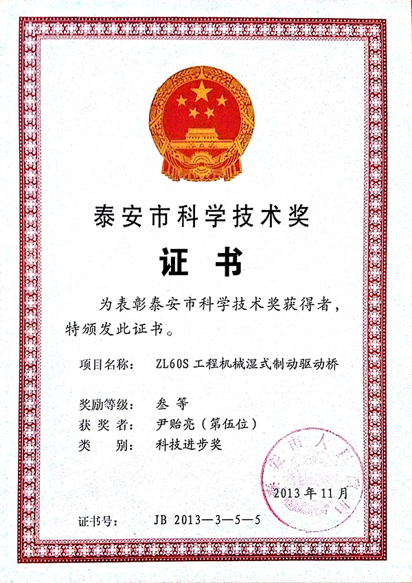 Tai'an science and Technology Award (ZL60S)