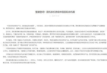 “打造农机新质生产力,加快建设农业强国”。10月26日,2024中国国际农业机械展览会在湖南长沙开幕。国机集团农机装备板块企业携重点产品震撼登场。集团党委书记、董事长张晓仑受邀出席开幕式。 详细>>