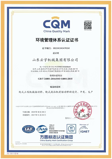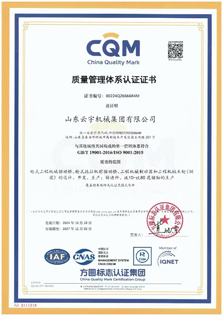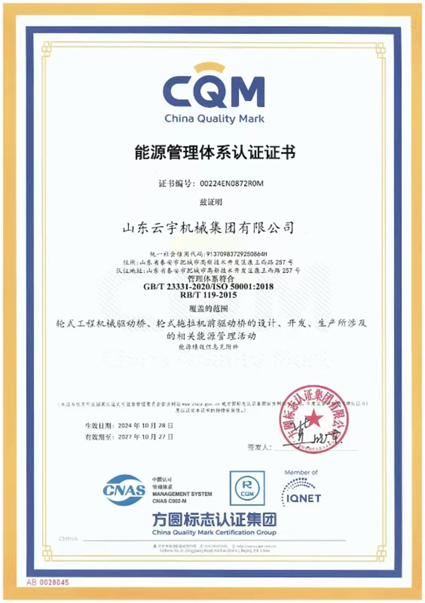 五十余载深耕不辍,我们以匠心守初心,筑牢发展根基。从驱动桥、制动器到钢圈、铸件,从为国内百余家头部主机厂配套,到产品批量走向全球,我们始终秉持“一丝不苟的设计、精益求精的制造”理念,坚守质量生命线,通过ISO9001、ISO14001等多项体系认证,建成国际先进的驱动桥试验中心,以千余台先进生产检测设备和自动化生产线,为每一件产品的品质保驾护航。作为驱动桥、制动器等四大类产品的行业标准起草单位,我们手握百余项国家专利,深耕驱动桥领域四十余年,市场占有率稳居行业前列,用实力诠释“中国驱动桥十大品牌”的担当,让“云宇”这一中国驰名商标,成为品质与信赖的代名词。