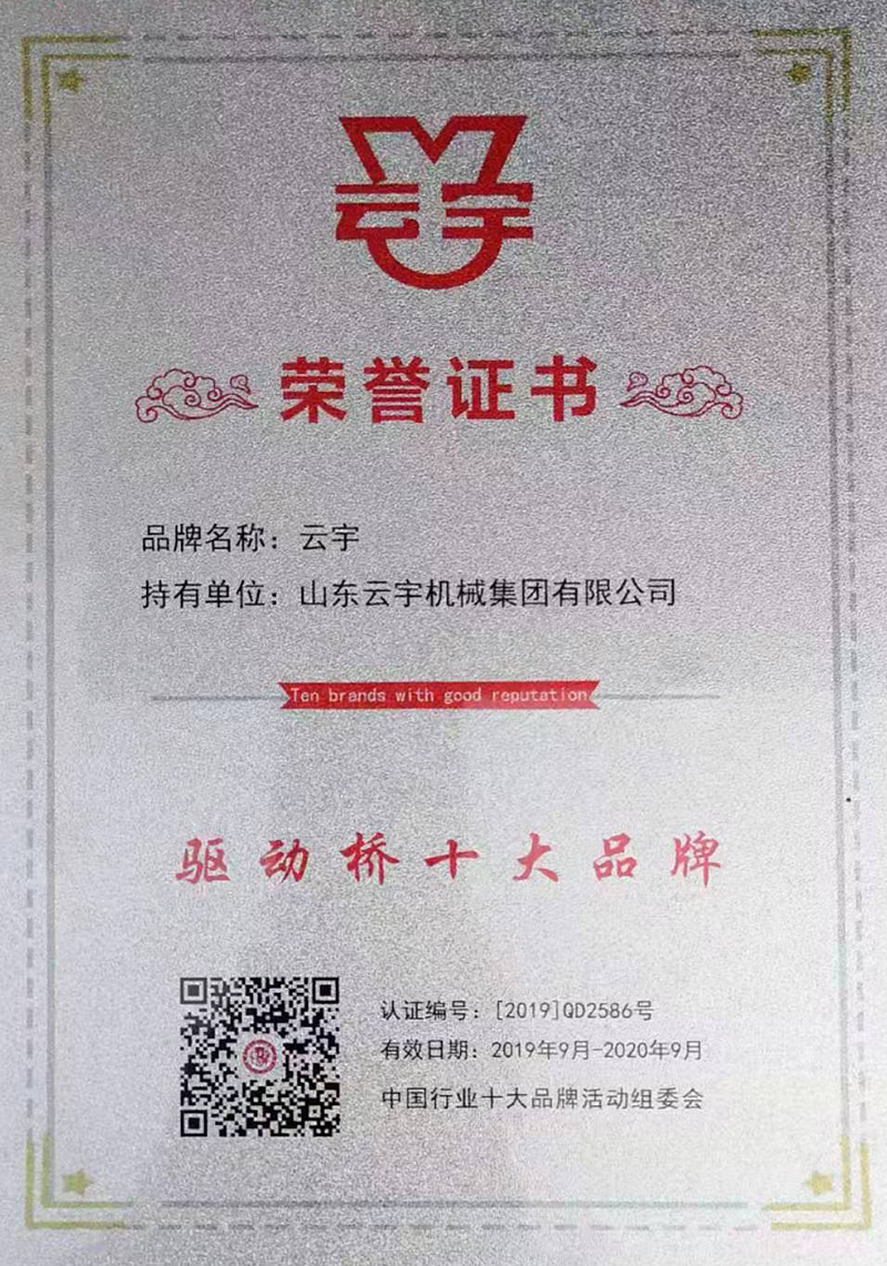 yl23411永利集团入选“中国驱动桥十大品牌”--云宇